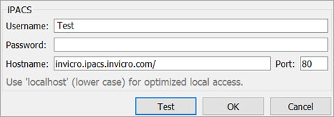 | Hostname is the site of the server for the iPACS, and Port is the communication channel. |
