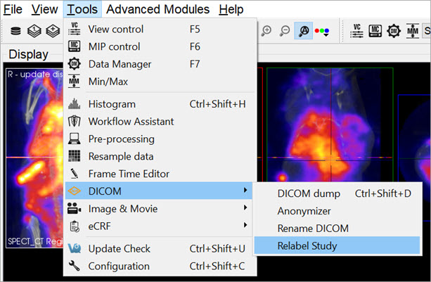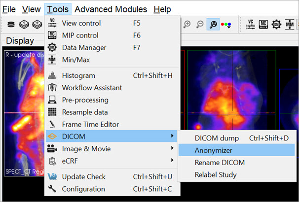 The DICOM Tools submenu contains features to aid in the management of DICOM data.