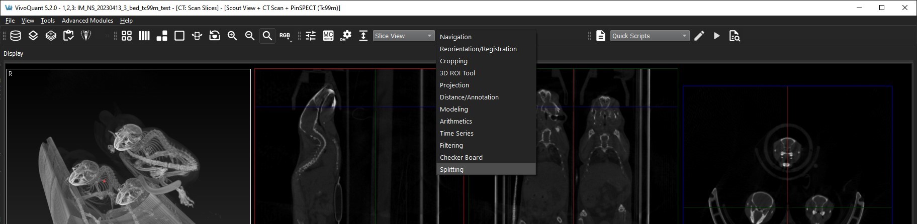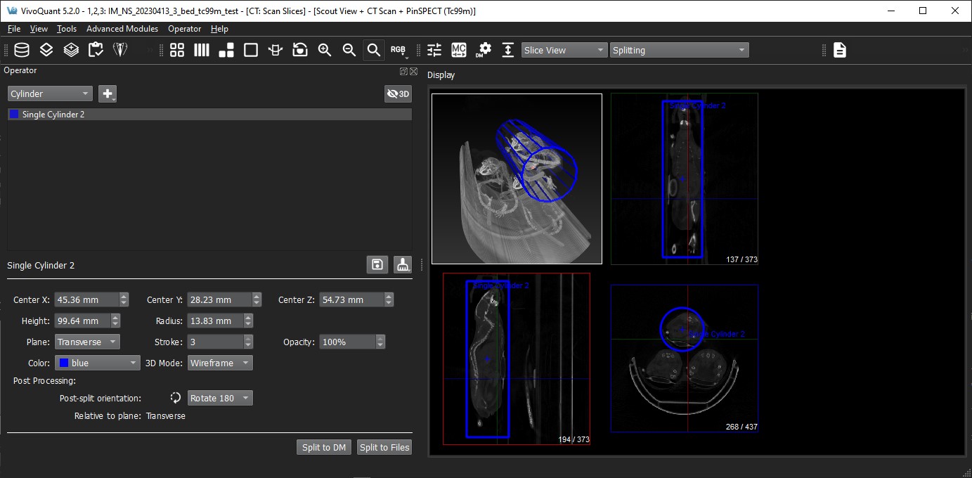 The Splitting Operator can be accessed and launched via the operator pull-down menu on VivoQuant’s front panel.