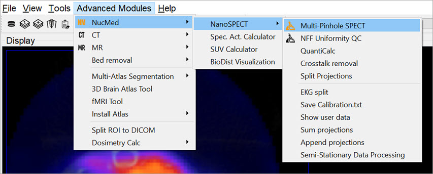 The MMP SPECT Calibration tool is available in the Advanced Modules Menu.