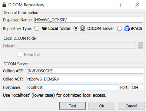 The local access VivoQuant is able to access the DICOM Server directly, so there is no need to add the VQ as a client on the DICOM Server.