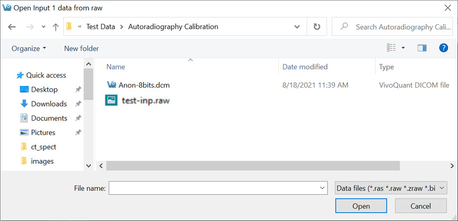 Selection of the Open Raw Data option opens a navigation window from which the raw data may be selected.