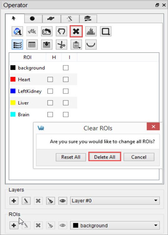 - To delete all ROIs in the layer, click OK.