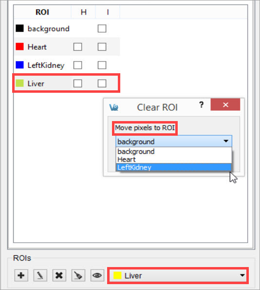 . A popup window will open and allow the user to move the pixels of the selected ROI to either the background or another ROI.