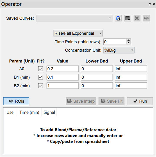 Pharmacokinetic models are available as a plug-in for the Modeling operator. These models include the Two-Tissue Compartment Model (2TCM), One-Tissue Compartment Model (1TCM), Logan Graphical Method, Simplified Reference Tissue Model 1 & 2 (SRTM/SRTM2), Logan Non-Invasive Graphical Method, and Patlak Analysis. Detailed information for these models may be found on the Pharmacokinetic Modeling page.