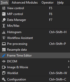 The Frame Time Editor tool allows you to change the frame duration in the DICOM Header