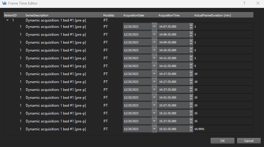 Note: It uses the DICOM tags FrameAcquisitionDuration if it’s dynamic data; otherwise, it uses ActualFrameDuration.