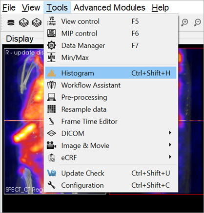 The Histogram tool is used to plot a histogram of the voxel values in a loaded data set.
