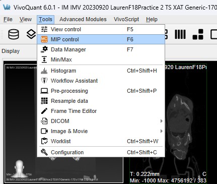 The MIP Control window provides a variety of options for manipulating the MIP and the appearance of open data sets in VivoQuant’s main window.