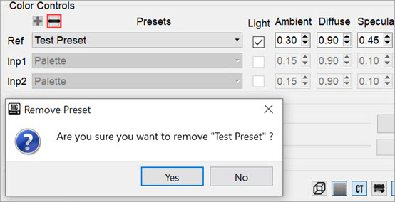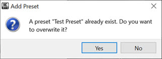 To remove a custom preset, click on the Remove Preset button. A popup window opens asking the user to confirm deletion of the custom preset.
