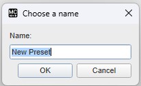 The newly created preset will then appear on the list of presets in the Presets combo box.