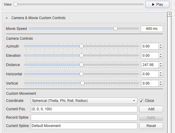 The movie playback speed is also configurable. When exporting a 3D rendered movie, the current camera playback configuration (trajectory, pose parameters, and speed) is used.