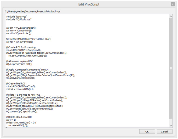 VivoScript is a scripting language built into VivoQuant. Its primary goal is to enable task automation, making it easier to streamline repetitive or complex workflows.