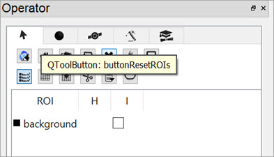 For example, to determine the name of the button in the 3D ROI operator that resets all ROIs, click on the Peek button