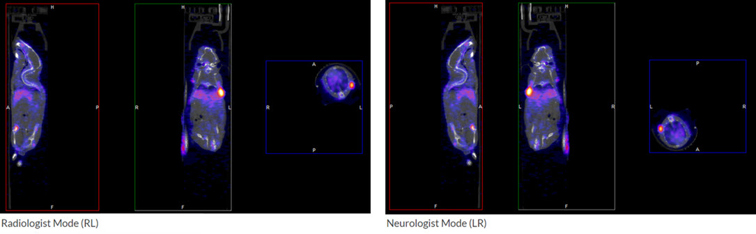 VivoQuant allows you to choose between two Left/Right orientation options: Neurologist (LR) and Radiologist (RL).