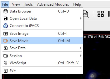 This function enables saves images as movie files. The slices can be saved individually (sagittal, coronal or transversal) or all in one movie. This feature can also be save a Maximum intensity Projection (MIP) picture.