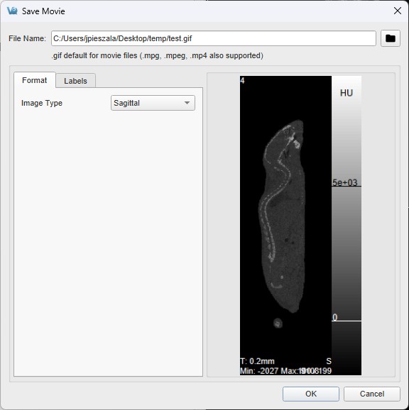 | Movie type | Sets the type of Movie. Movie types can be: - Maximum intensity projection (MIP) - Sagittal slice - Coronal slice - Transversal slice - All Separately |