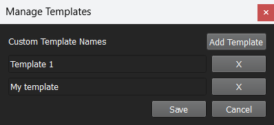 The Manage Templates dialog allows you to create up to seven templates, delete and rename them. Once you save the current list you will access to them via the Select Templates dropdown option.