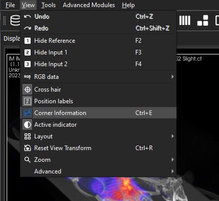 To display the image information, go to the View menu and select Corner Information.