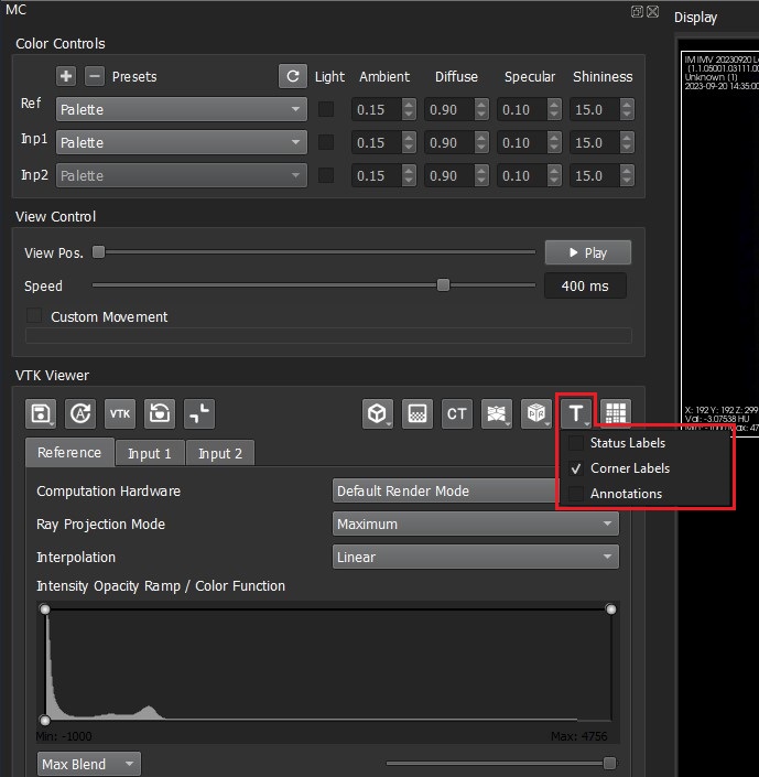 The MIP/3D view also has additional configuration settings for it’s corner labels.