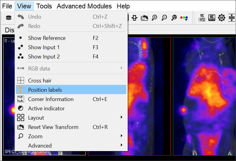 To display the position labels on the image, go to the View menu and select Position Labels.