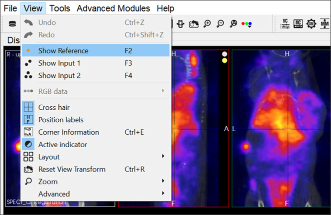 To toggle the appearance of these datasets, go to the View menu and select Show Reference, Show Input 1, or Show Input 2. The change will be immediately visible in the Display.