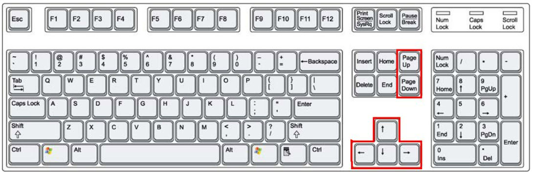 Mac: Arrow keys and PageUp/PageDn are the same, except PageUp = fn + ↑, PageDn = fn + ↓