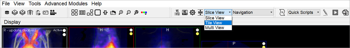 There are two operators available in Tile View. The Time Series operator, which enables dynamic data to be viewed as a time series, and the 3D ROI operator operator, which enables ROIs to be displayed in Tile View.