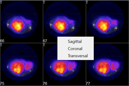 To switch between views (coronal, sagittal, transversal) in the Tile View, right-click on a tile and choose the desired view.
